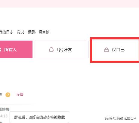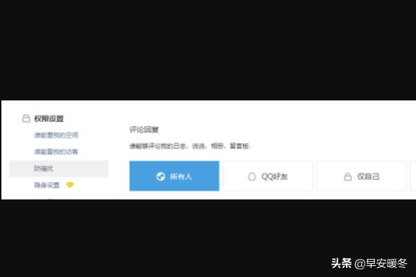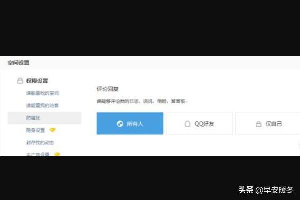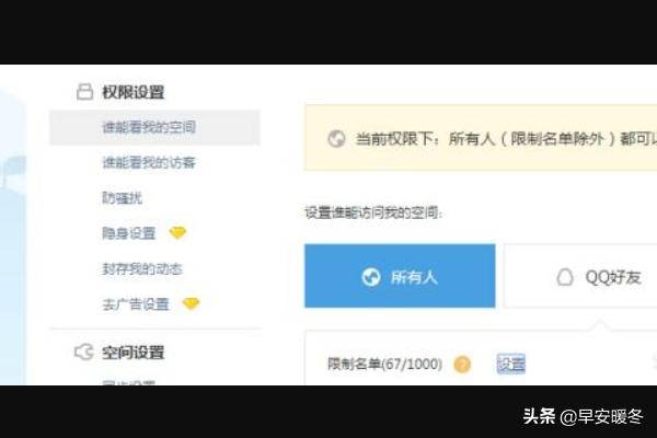 QQ空间可以在空间权限里设置访问权限,有四种选项:指定好友可见、回答问题可见、所有人、仅自己,可以根据你的要求进行选择。具体设置方法如下:登陆QQ空间,在空间的右上角找到设置,并打开,在设置里面找到谁能看我的空间,点开;点击下面的限制名单设置;在弹出来的界面输入对方的QQ号码,并点击添加;添加完成之后,会看到被添加的人;还可以在其他的界面设置,根据自己设置的人数等因。