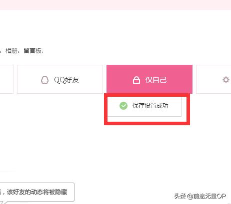 4、选择好之后会出现如图所示,此时就会提示保存设置成功,那么这样子设置的话,就设置了所有的人都不能评论说说,日记,相册,也不能到留言板留言了。