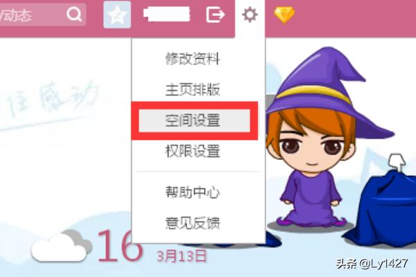 1登录QQ空间,从右上角的齿轮进入权限设置。