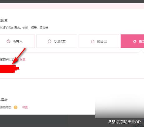 4如果你也可以在防骚扰项中,针对性对指定朋友开放你的空间访问权限。