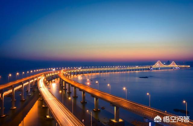 5、胶州湾大桥东起海湾大桥立交,上跨胶州湾,中接红岛互通立交,西至黄岛东枢纽立交;线路全长36.48千米、桥梁全长25.881千米;桥面为双向六车道高速公路,设计速度80千米/小时。自驾游经过的大桥。