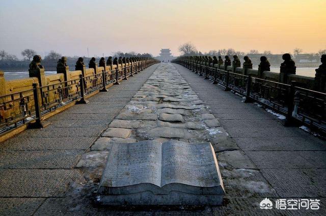 卢沟桥亦称芦沟桥,位于北京市丰台区永定河,因横跨卢沟河(即永定河)而得名,是北京市现存古老的石造联拱桥。